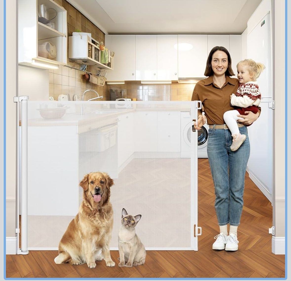4’Extra Tall X 115" Wide Baby Gates for Doorways Extra Wide Dog Gates Indoor Scratch-Resistant 4ft Tall Pet Gate Indoor Mesh Dog Gate Outdoor Porch Prevent Kids/Pets from Jumping Over, White..$20 no delivery