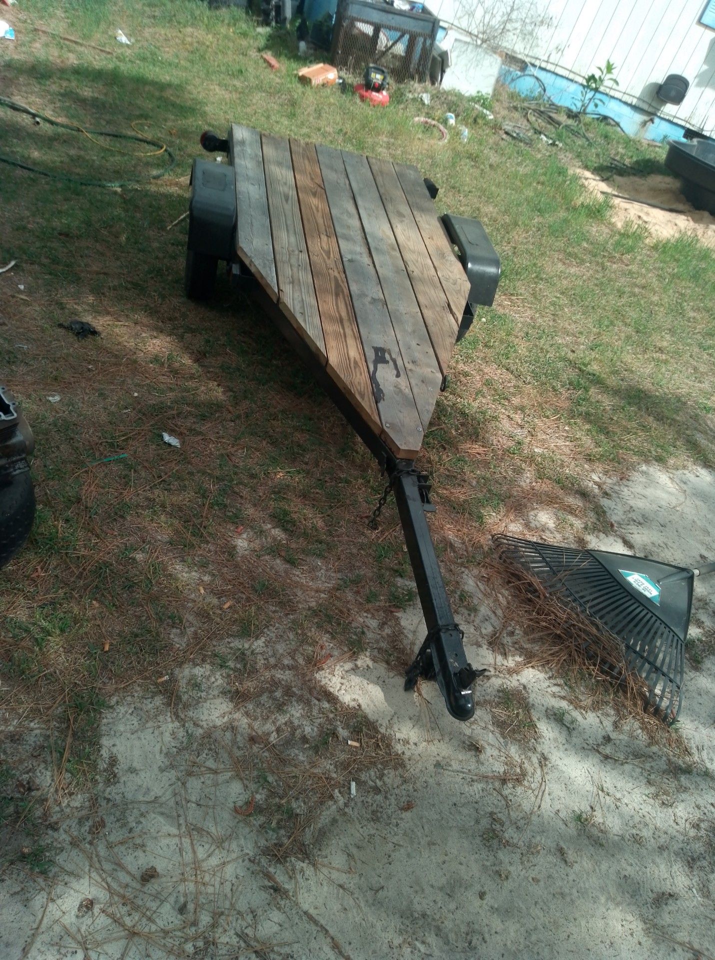 Have a motorcycle trailer and ready to go just got done finished building it has it been used yet It tilts and it's ready to be yours The only thing that needs is the tail lights and I have them just not have time to put them on yet
