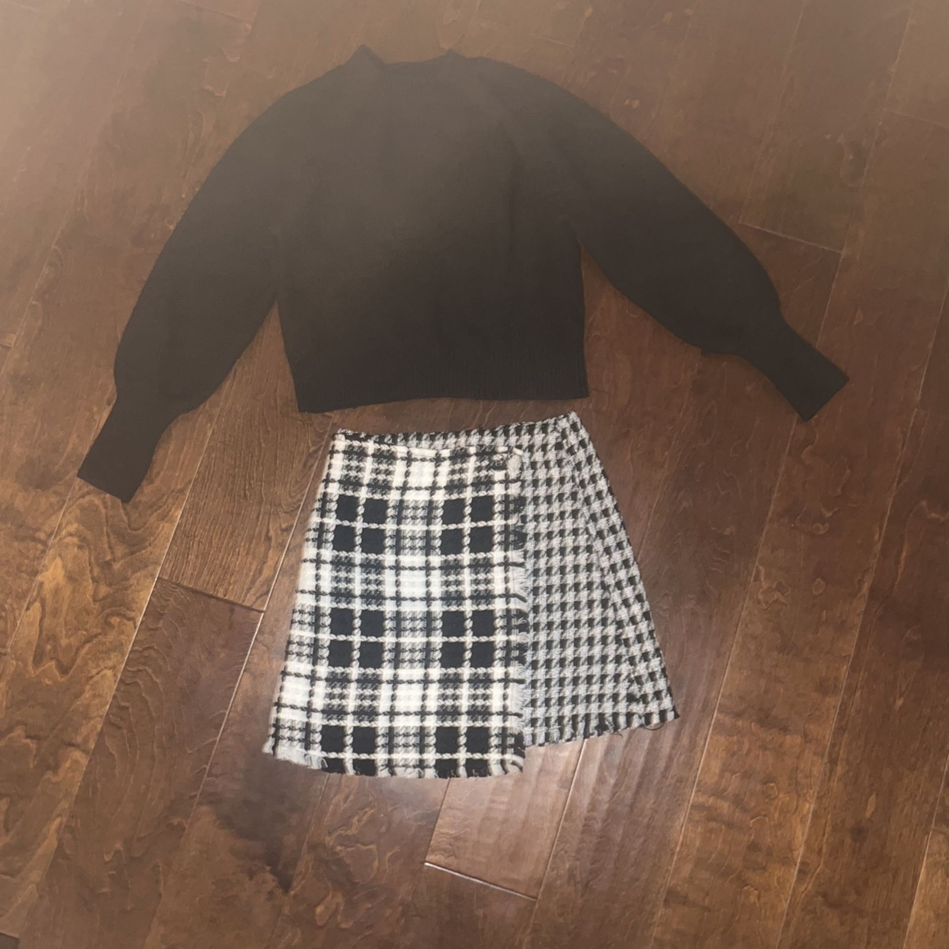 Black and white plaid tweed skirt from Dillards- NEW! Gianni Bini girls size 8 and the sweater (worn once) is a size medium. Also GB girls. So cute and perfect for the holidays! $15 for the outfit. Pick up in chandler (McQueen/ocotillo)