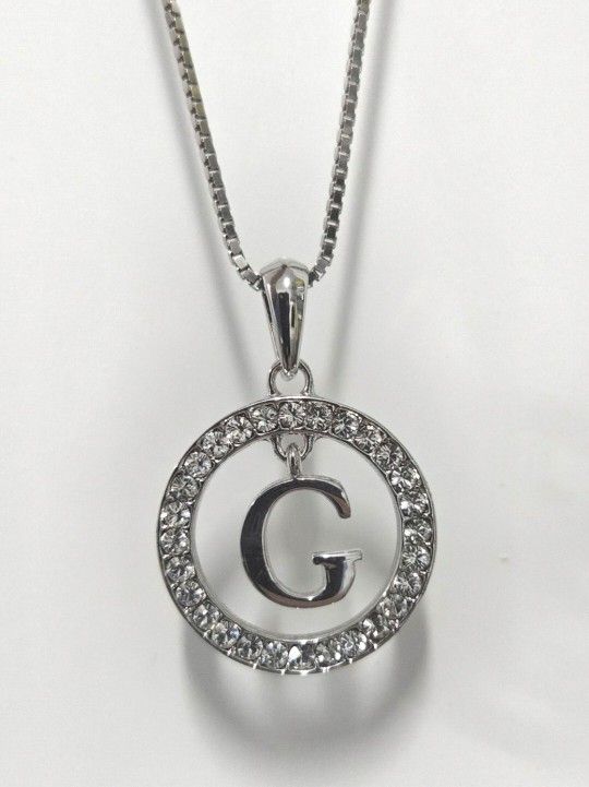 White CZ Circle Initial "G" Pendant Necklace (Like New)