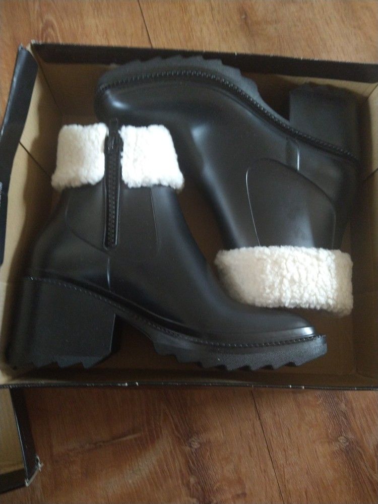 INC INTERNATIONAL Black Ankle Boots Sz 10 Faux LEATHER Sherpa Waterproof Chunky Lug Sole. Fashionable for any time.