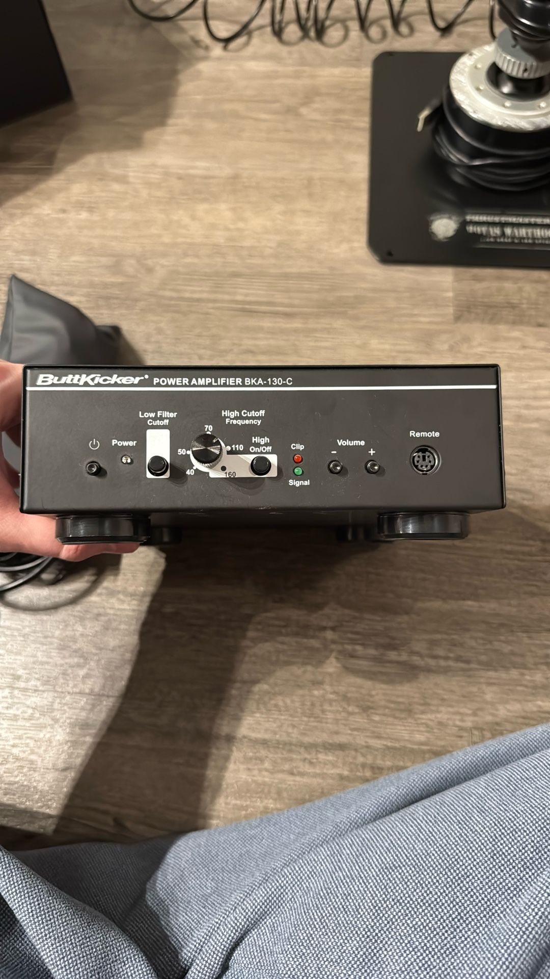 Speaker/sub power amplifier and wired remote control. Designed for buttkicker tactile transducer.