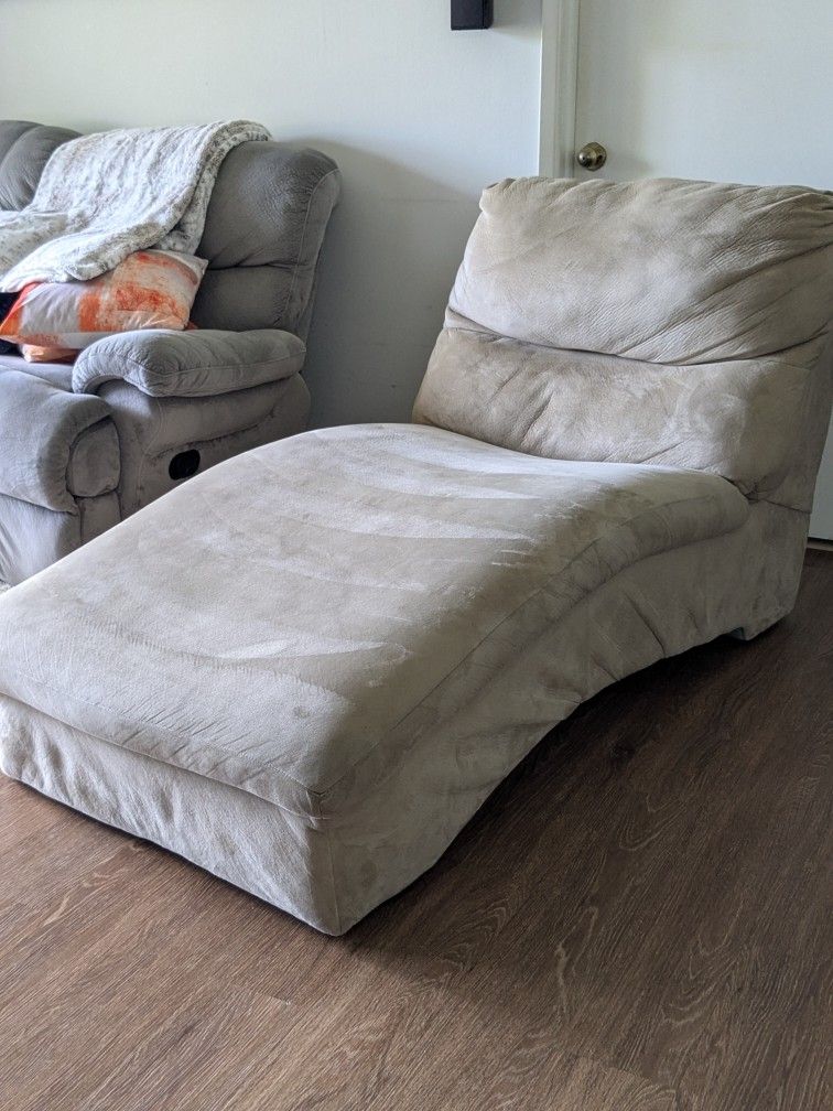 Beige, microfiber, easy clean. Comfort and relaxing sofa. Need to go ASAP