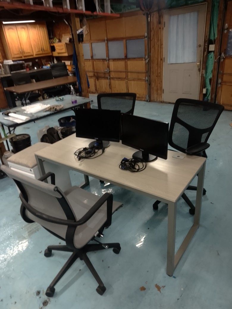 I have a like new office set up..just in time for Xmas You get 2 monitors, with cables..NO PC ...NO PC 3 office chairs 1 New desk 1 small file cabinet This has only been used a couple times.. No scratches, tears or marks .. Great for start up office or tax season $100.00 obo