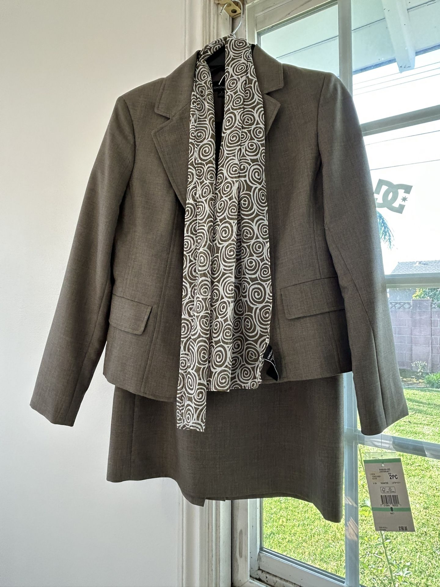 Women’s 2-Piece Skirt Suit Size 8 – Blazer + Skirt + Scarf – Office/Formal”