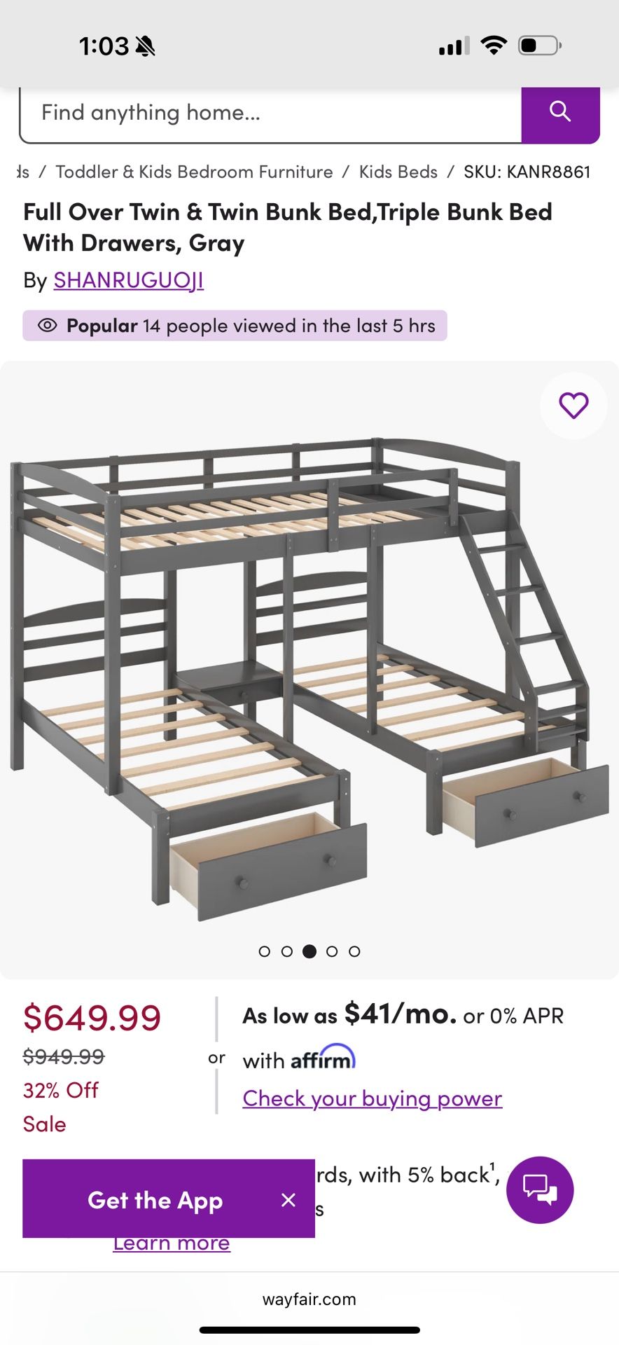 Full over 2 twin beds. Perfect for guest room and/or kids room.