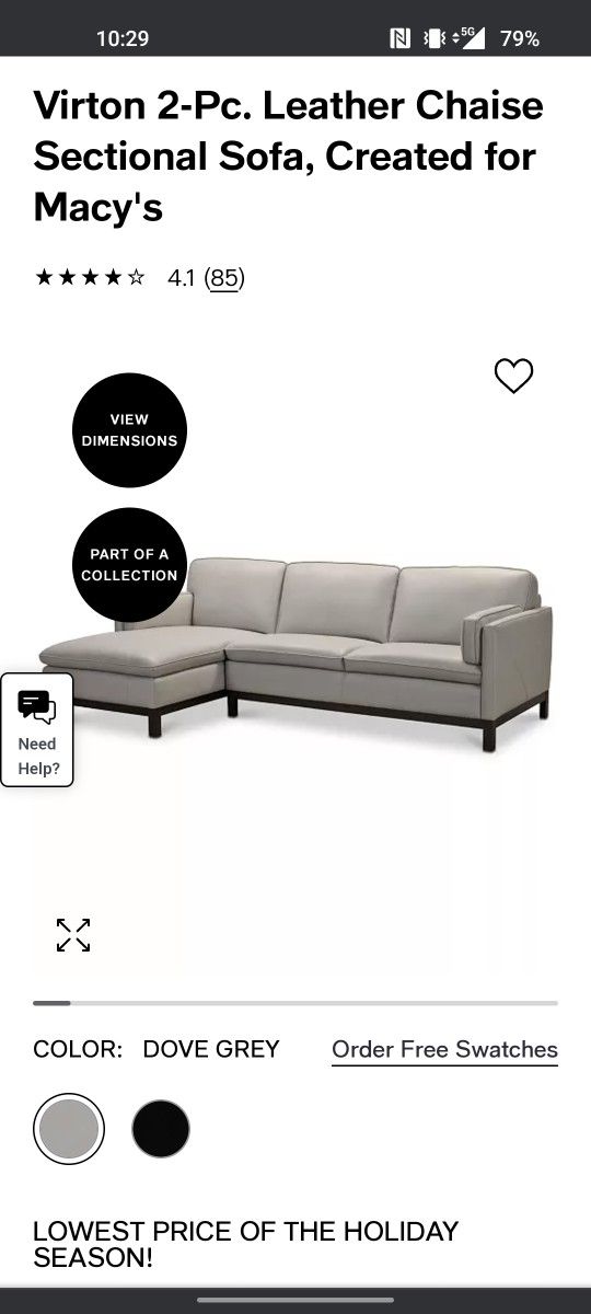Macy's Virton 2 Piece Leather Sectional Modern