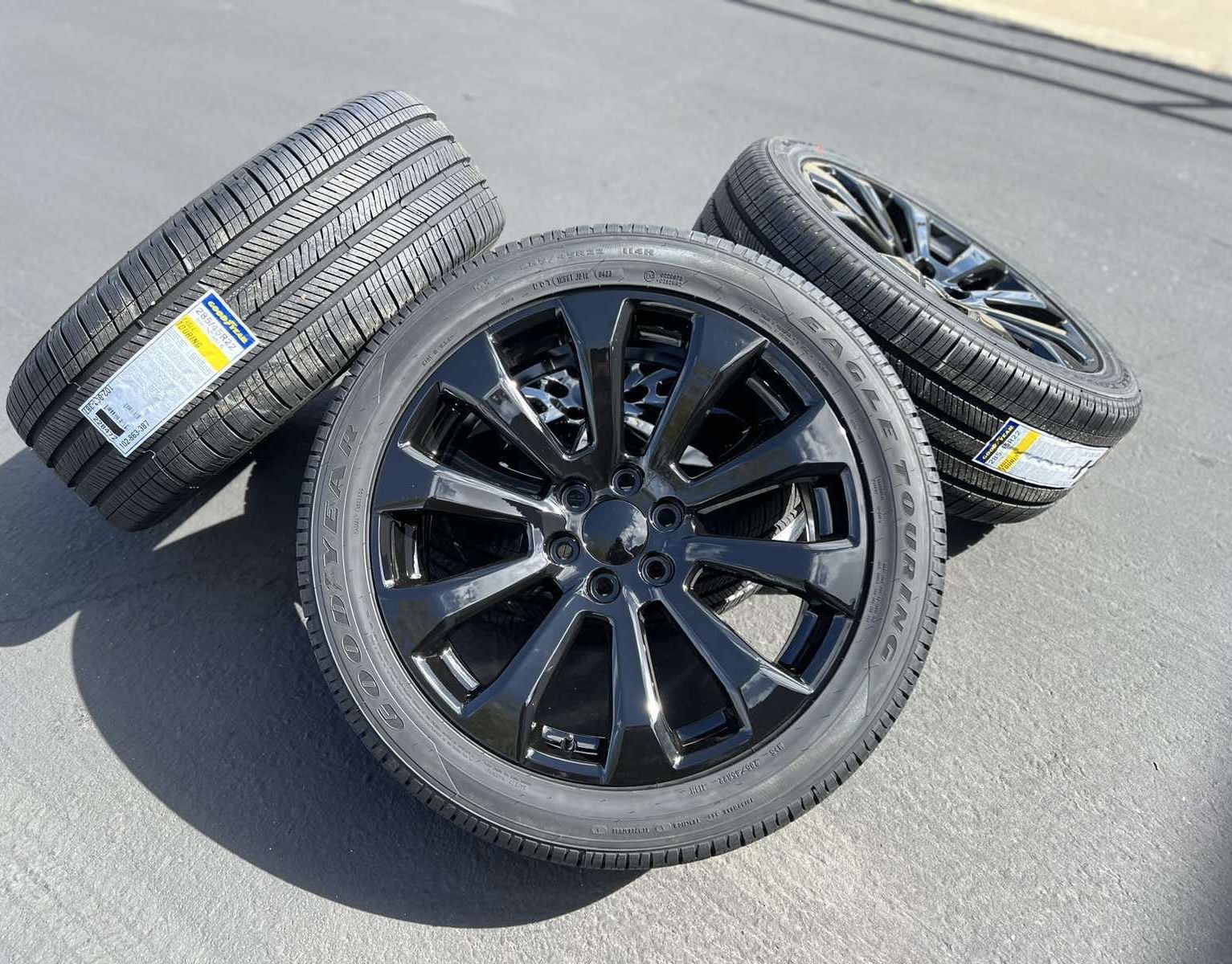 No trades, please don't ask Price is firm Set - 4 New Escalade/Tahoe/Suburban/Yukon 22" aftermarket rims with 285/45R22 tires This listing is for four (4) new Black 22" wheels for GM full-sized trucks and SUV's. New, never-mounted The design is the factory-option code SSX 22" GM wheel that GM specifically designates as "22 INCH WHEEL, GLOSS BLACK, 12-SPOKE, SSX". It is utilized on Escalade's vaunted ONYX EDITION but also has become an option on many full-sized GM trucks and SUV's since 2021. These are a perfect and exact replacement set for this design. Offset is correct and the factory cap fits perfectly. Quality meets (exceeds) the wheels that they replace. These are the best and most popular styling upgrade currently available for these vehicles. FITMENTS: These 22" x 9" rims have a 6-lug bolt pattern that fits all full-sized GM trucks and SUV's with 6-lug hubs. Chevrolet: 2000-2023 Tahoe, Suburban 4x2 & 4x4 2002-2013 Avalanche 2002-2005 Astro Van 2003-2018 Express Van 1(contact info removed)-2023 Silverado 1500 4x2 & 4x4 GMC: 2000-2023 Sierra K1500 4x4 & 4x2 2003-2005 Safari 2003-2018 Savanna Van 1500 (6 lug) 2000-2023 Yukon , Yukon XL & Denali 4x2 & 4x4 models Cadillac: 1(contact info removed) Escalade - EXT & ESV (all models) All of the above as long as the vehicle has 6-lug wheels