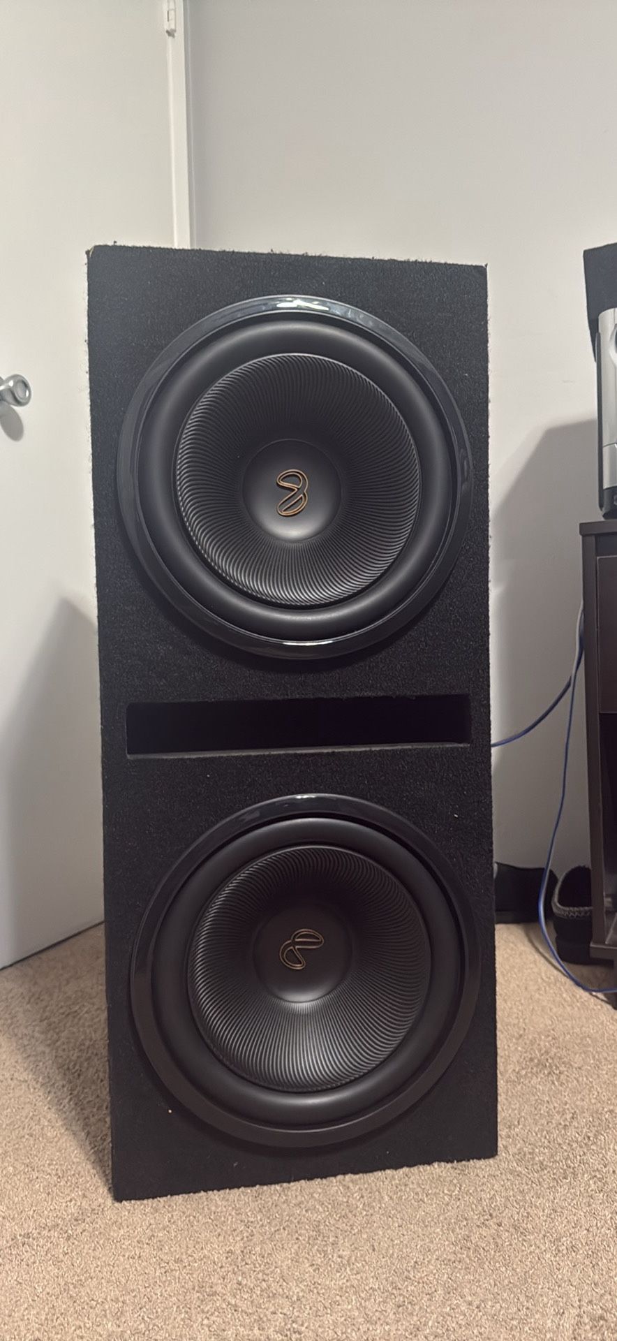 Brand New Used once don’t need anymore since i’m upgrading 250$ obo Comes with ported box tuned to 32-34hz