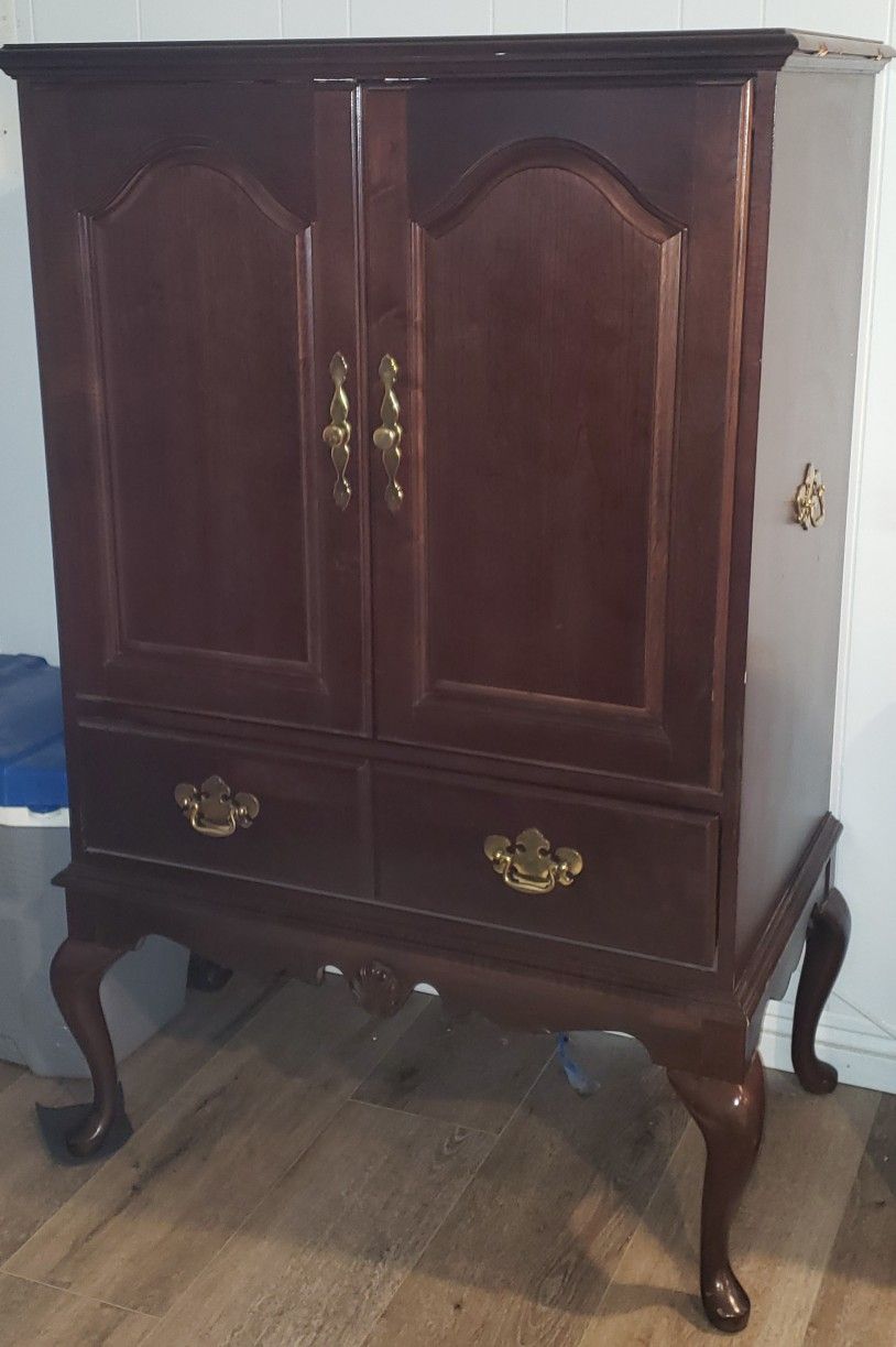 Vintage TV Cabinet. Has swivel base for TV, a drawer that the front lays down , Cabinet doors will slide in out of way , has plug inside corner . I need the space so please make offer it's gotta go, could be used for many things, made of Mahogany 1920's