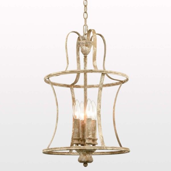 French Country Lantern Chandelier 4-Light Distressed White Pendant Light Fixtures with Chain *NEW*
