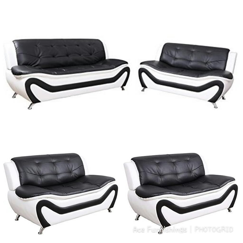 Brand New White & Black Leather 2pc Modern Style Sofa & Loveseat