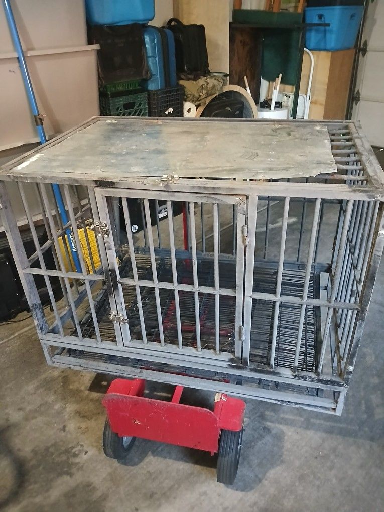 -Height = 31". -Width = 28.5". -Length = 42.5". -Weight = approx 175lbs. Opens on top and on one side. Heavy-Duty, sturdy and durable. The bottom side is missing a couple of bars and a few loose/ detatched ones too, replaced with a steel retriever fence ( see pictures). For that, I'll take another $20 off, so $280. Latches are good, just a little dirty & dusty. Local pick-up only. FIRM on price... 85711.