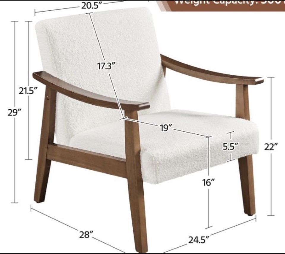 Fabric Accent Chair, Mid-Century Modern Armchair with Solid Wood Legs, Reading Leisure Chair with High Back for Living Room Bedroom Waiting Room,Ivory