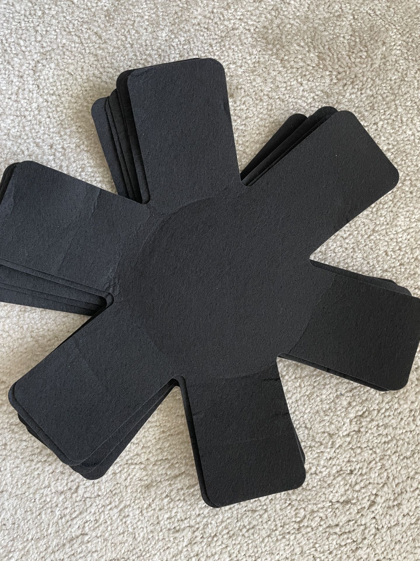 Asking $9 obo Selling 6 cushion pads Black thick soft cushions Great for providing cushion between utensils, pots, pans, dishes, anything delicate needing protection