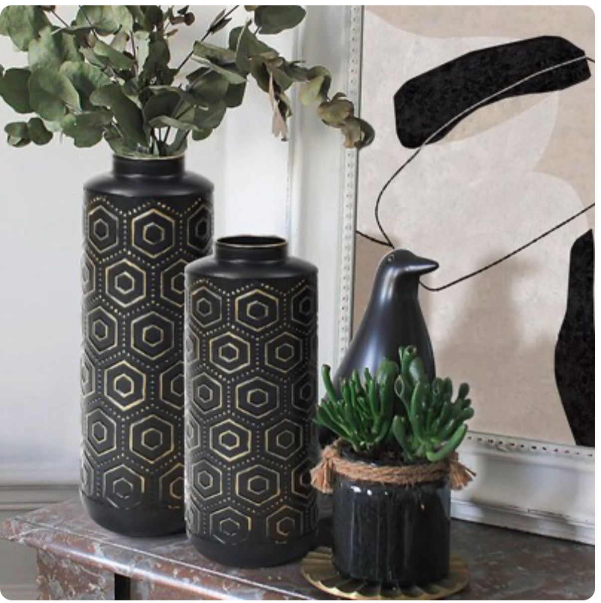 2-Pack Black Metal Art Deco Vase Item D1464