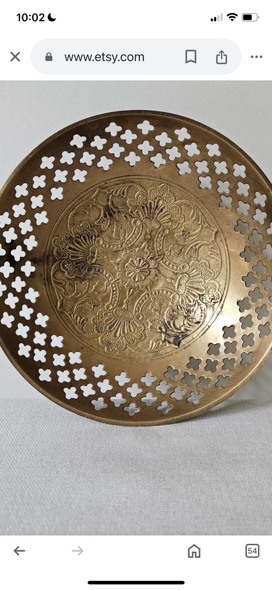 Vintage Etched and Pierced Brass Bowl 5.5”