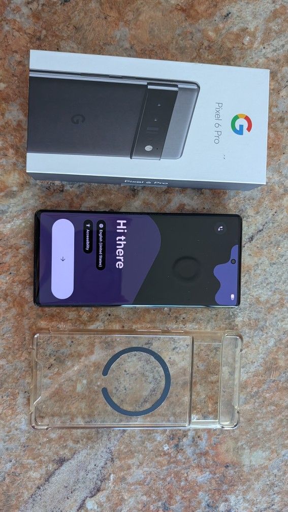 Google Pixel 6 Pro 128 GB Stormy Black Works great. Comes with a case and box.