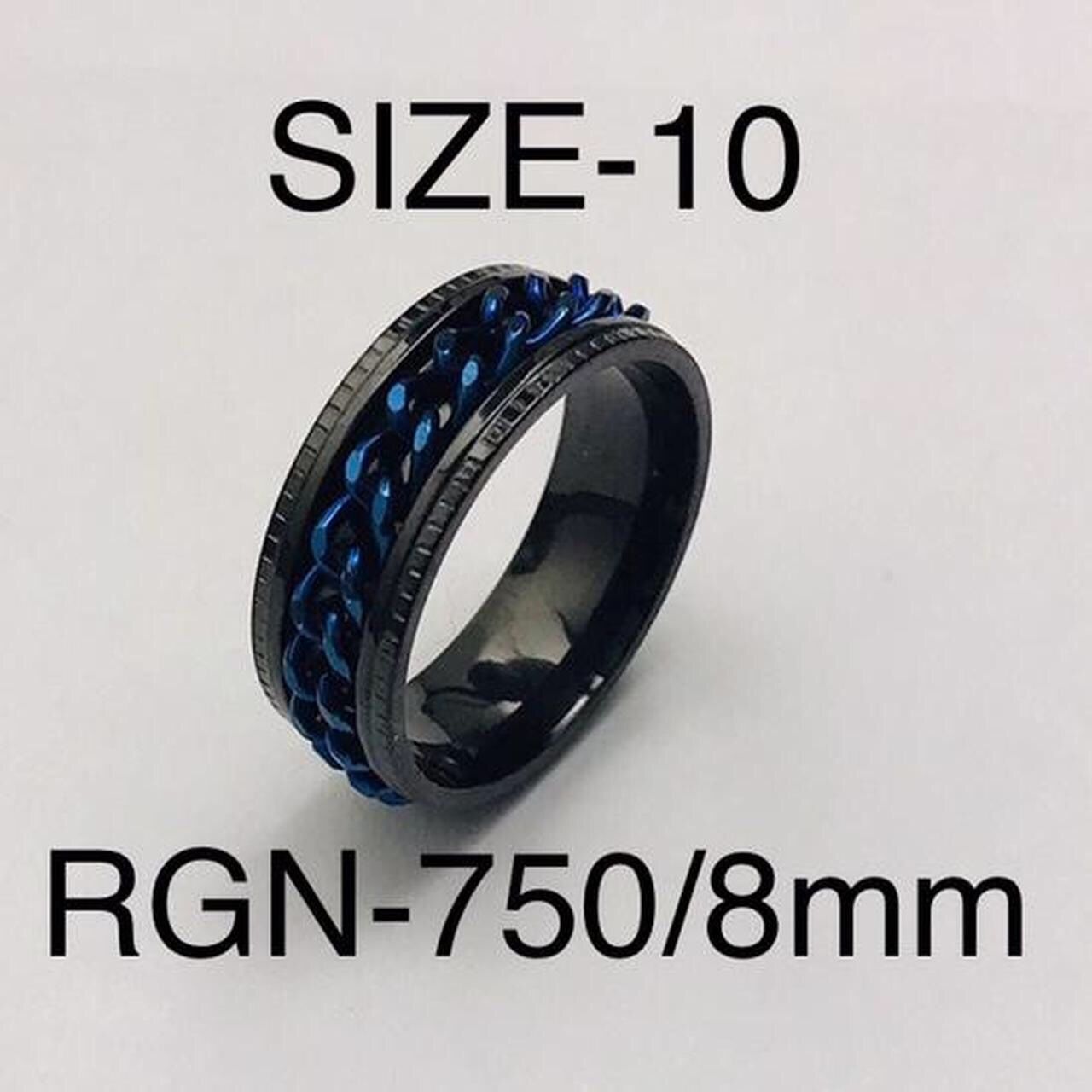 Stainless Steel Blue Color Chain Spinner Ring Band For Men & Women with: RGN-750/Size-10 Item No: RGN-750 Ring Size: 10 Thickness: 8mm Ring Type: Ring Band description: Stainless Steel Ring Band Design Specs: Ring Band With Blue Color Chain Spinner Material: Stainless Steel Occasion: Perfect For All Occasions #RINGBAND#GOTHIC#PUNK#CHAINSPINNER #STEELRINGBAND