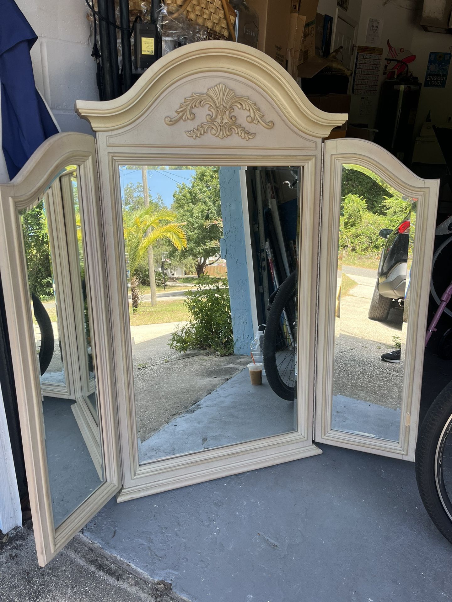 Large Folding Vanity Mirror With Nice Crown Molding Awesome condition. Full length. Meet up in St Augustine beach, near F street Awesome shape! One little part of crown molding on bottom shown in pics