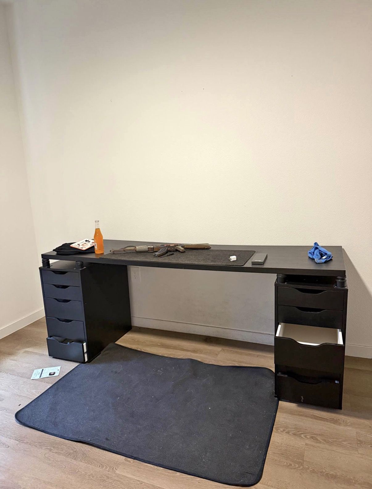 IKEA Alex drawers and desk(78in Length) comes with desk risers. Drawers need a little cleaning on the inside and some drawer get stuck for some reason but just push it hard and it will go in. Other than that great drawers no deep scratches or wear looking for 230$ located near 67th ave and camelback