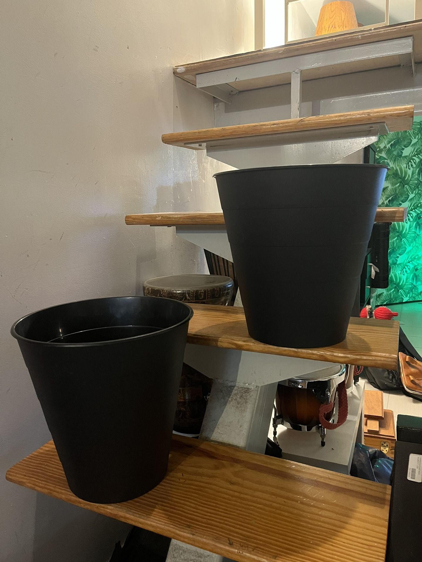 Two small Ikea black trash cans, like new. Good for bathroom or bedroom spaces.