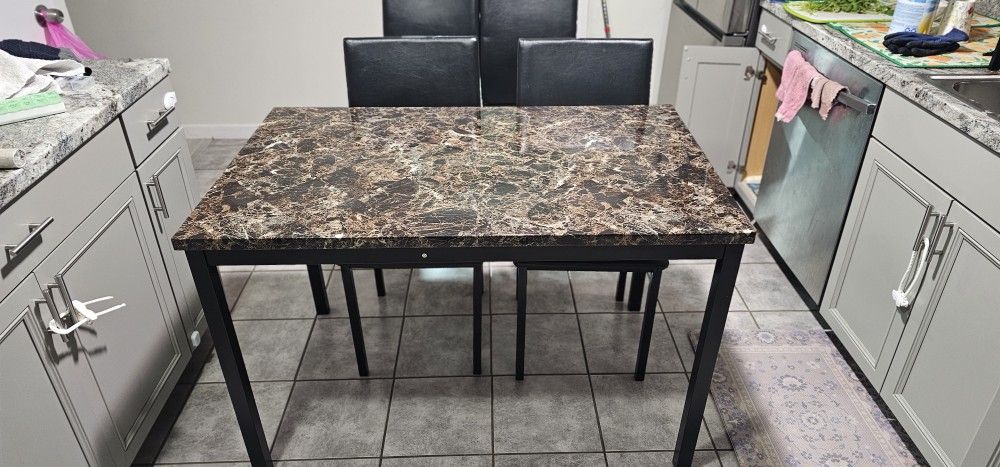Dining table with four matching chairs for sale. Solid and sturdy Seats 4 people comfortably Clean and well maintained Perfect for apartment, condo, or small family Minor normal wear from use (see photos). Selling because upgrading furniture. Pickup only. North Albany Message me if interested.
