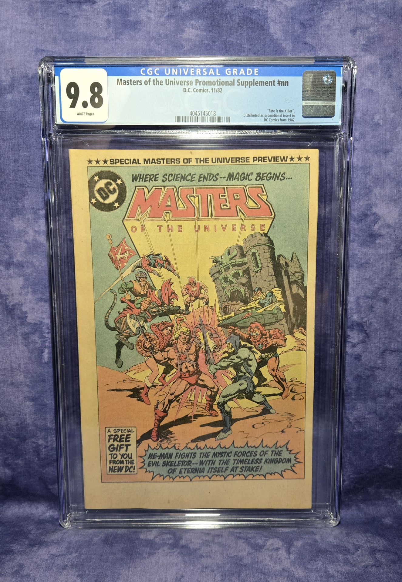 DC Comics Masters of the Universe Promotional Supplement, 1982, graded CGC 9.8 white pages Special Masters of the Universe (MOTU) preview distributed as a promotional insert in DC comics from 1982 Pictured item actual item sold Please see photos for further Every slab comes with a random complimentary raw comic Cash preferred or Venmo on meet up. Available for pick up in Diamond Bar California.