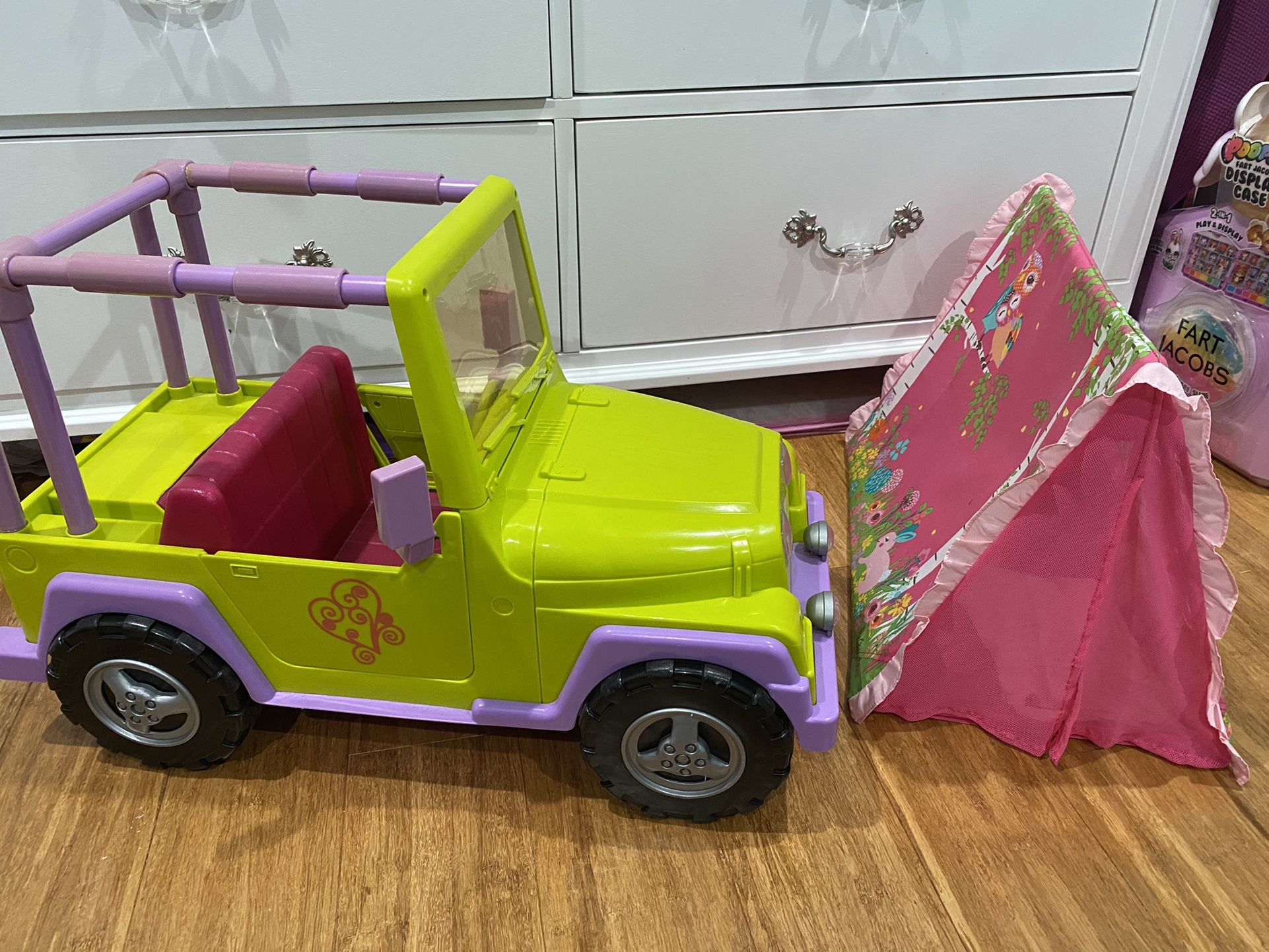 American girl tent, and Our generation Jeep. Both in perfect condition. Perfect for any fan that loves camping!