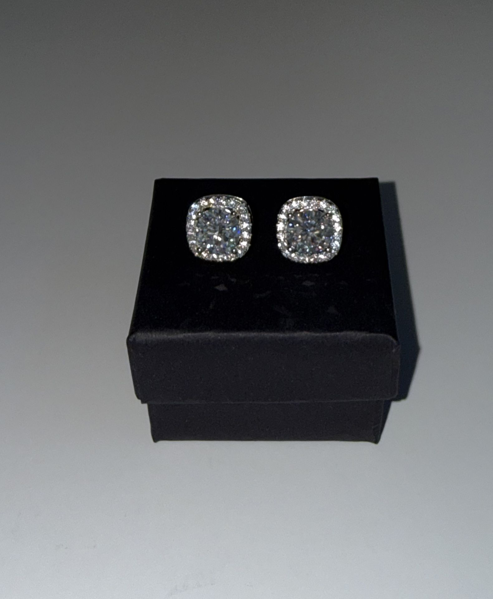 These are moissanite earrings that pass a diamond tester The weight is 2.0 carat they have 925 sterling silver on the back Estos pendientes de moissanita dan positivo en el comprobador de diamantes. El peso es de 2,0 quilates. Tienen plata de ley 925 en la parte posterior.