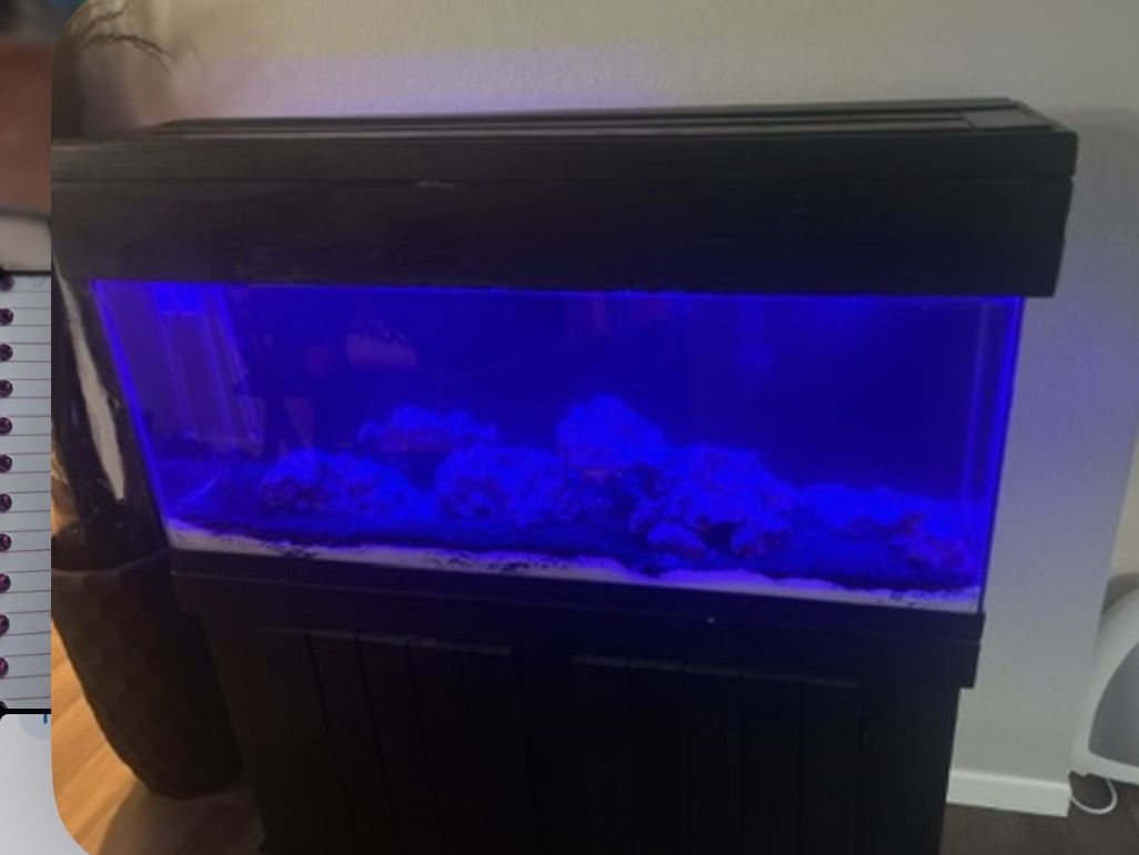 Selling my 55-gallon saltwater aquarium setup with everything you need to get started or upgrade. Includes: • 55-gallon glass tank • Matching stand • Color-changing LED lighting • Heater • 5 live rocks for natural filtration • Sand / rock (optional) • Salt mix • 3 hardy damsel fish included Tank has been established and running. Recently cleaned and in good working condition. Great setup for someone looking to get into saltwater or expand their current system. Price: $275 OBO Pickup only. Bring help — tank is heavy.