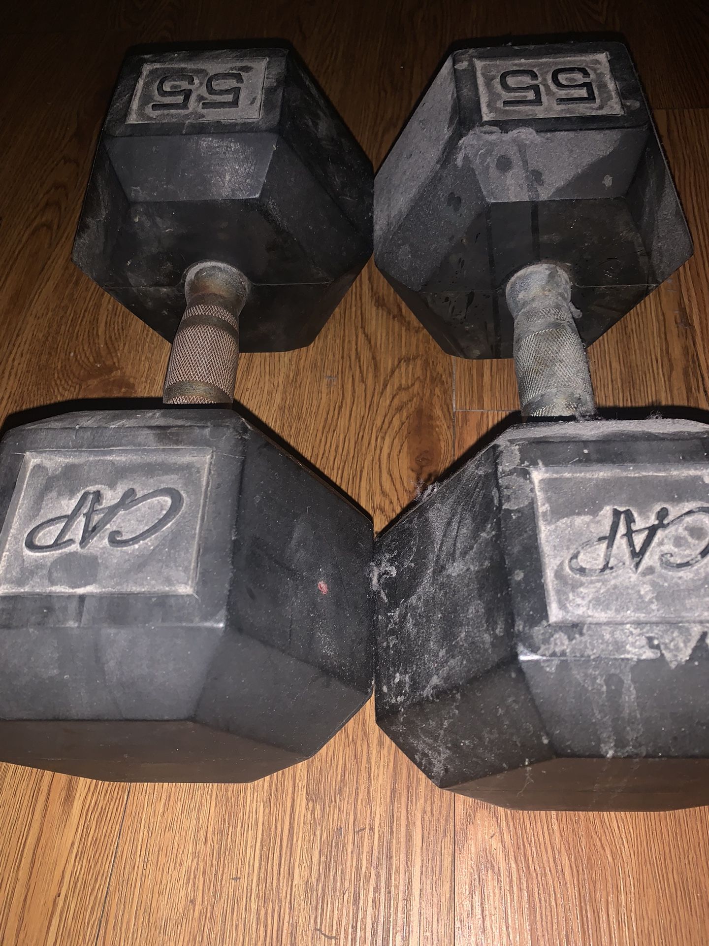 Pair of 55 pound dumbbells for $110 dollars. Dumbell,Olympic, barbell,road bike,weirder,bench,plates, patriot