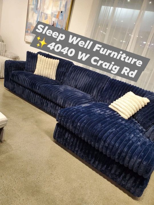 🙋♂️ blue faux chinchilla plush sectional sofa 👉👉$1999 👉NOW! (Originally $2400) Several styles available available! Black, gray or ivory white 🙋♂️👉SLEEP WELL FURNITURE 4040 W CRAIG RD LAS VEGAS Open 10-7pm Hablamos Español 👉We offer Financing💲 Take home it Home 👉$50 DOWN No credit required, Zero interest up to 120 days Select from Koalofi, Acima, Kornerstone, Kafene finance. Furniture Sectional Sofa Queen King Mattress Bedroom Bunk beds Dining table sets