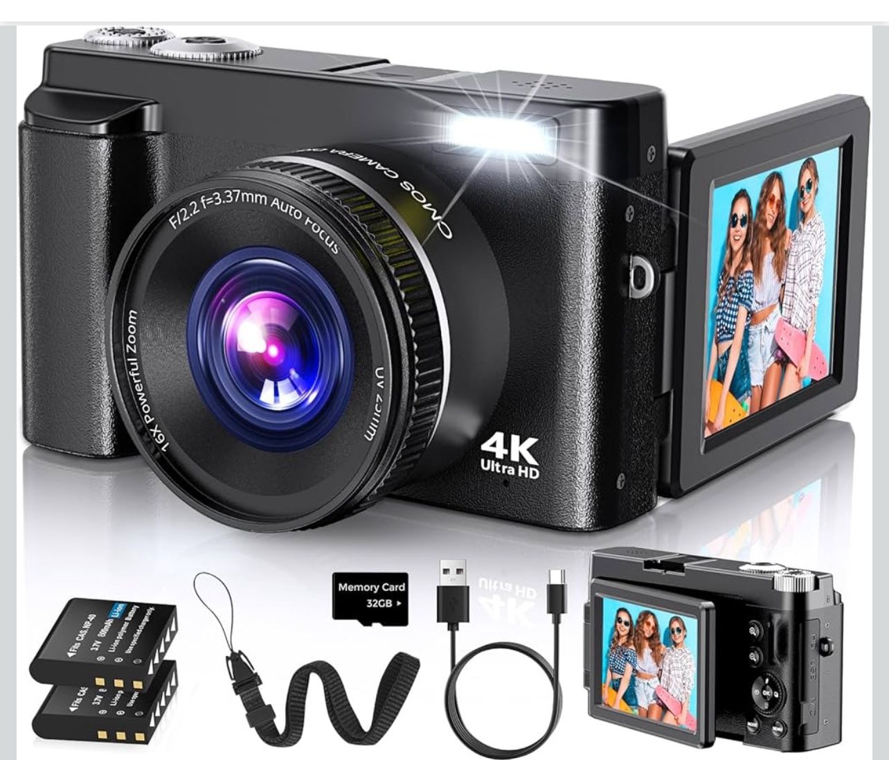4K Digital Camera for Photography Autofocus, 2025 Latest 48MP Vlogging Camera for YouTube with SD Card, 2 Batteries, 3" 180°Flip Screen Compact Travel