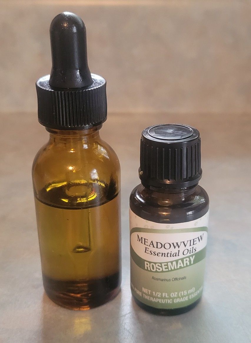 Purchased new earlier this year and still ¾ full . Also comes with amber dropper bottle that is filled with a carrier oil and a couple drops rosemary oil.