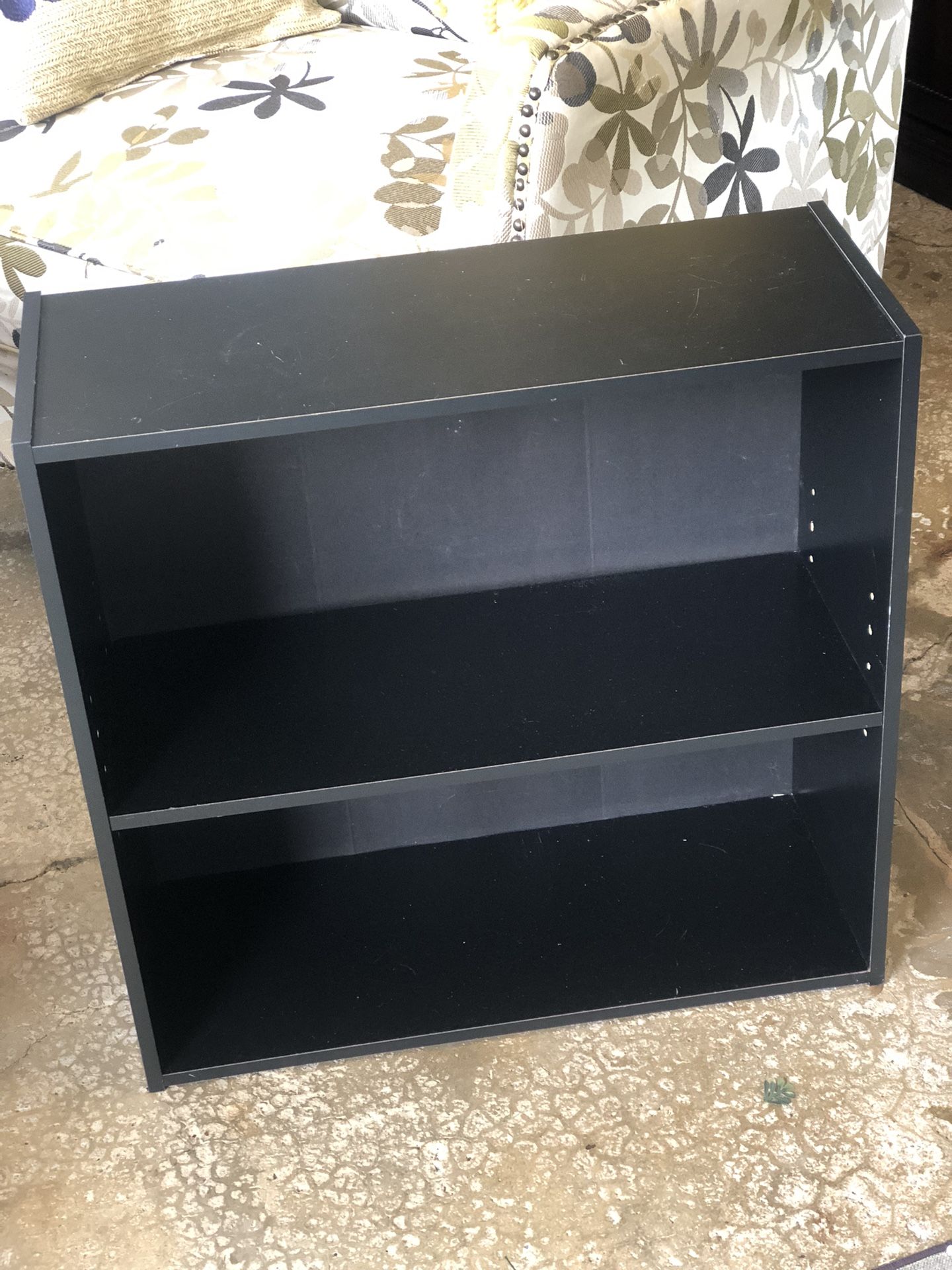 Color: Black In Good Pre-Owned Condition .Has scratches on the top of shelf- See Picture Peeling a little bit on the bottom on the side-See Picture. Plenty of life in it for the next family. Length= 24 Inches (2 Feet) Width= 9.5 Inches Height: 23.5 Inches Great for College Dorms Available for pickup at my home in Oswego, IL I take Cash or Zelle.