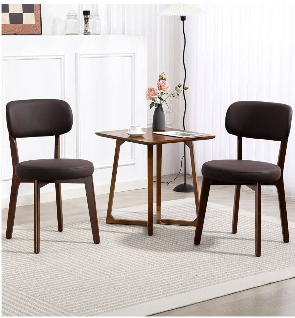 Modern Dining Chairs with Rubberwood Frame, Black Faux Leather Upholstered, 250 LBS Weight Capacity, Anti-Slip Protectors (Brown)