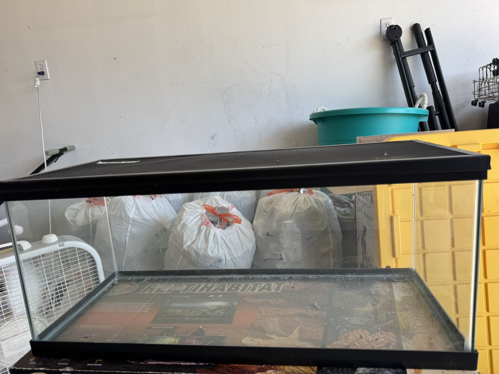 I believe this is a 20 gallon tank. I have the screen that sits on top, nothing fancy but definitely a solid tank for a smaller starter reptile. It’s in really good condition with little to no water stains. I’m asking for $30 obo.