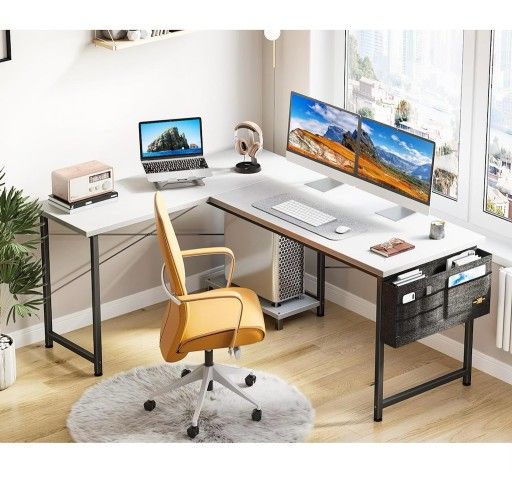 AODK L Shaped Desk, 50 Inch Computer Desk with Storage Bag, Reversible Home Office Desk with Host Stand, Vintage Corner Table for Bedroom Studio, Modern Wood PC Desk for Study