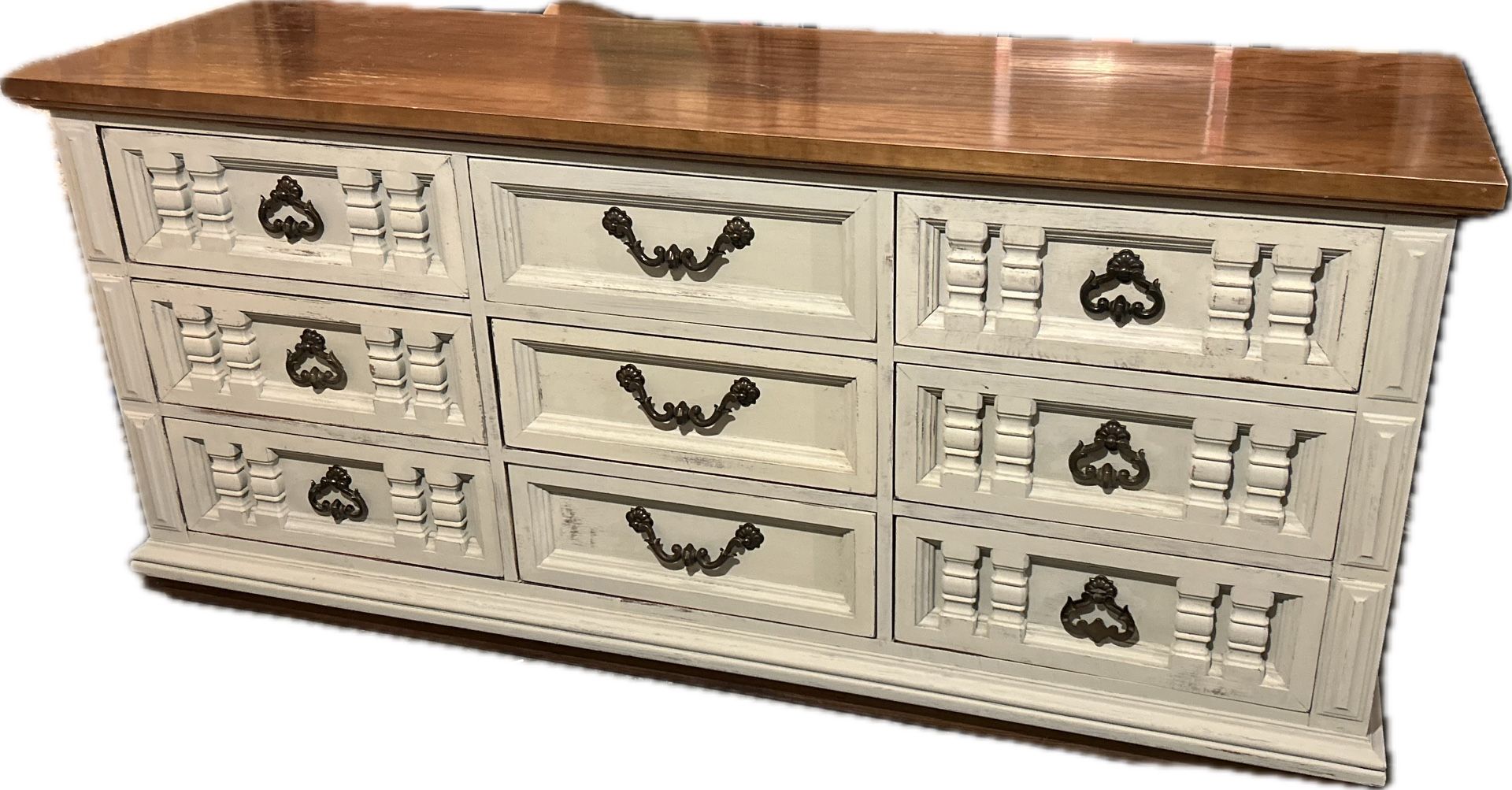 Vintage Solid Wood 9 Drawer Dresser With Patina Finish