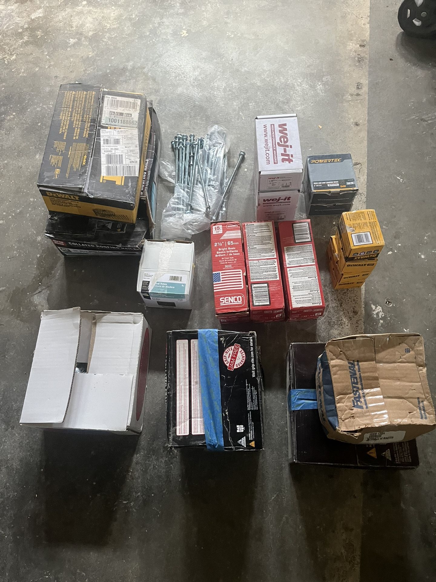 18,16,15 gauge brand nailers Framing nails Concrete screws and nails Siding nails Trims head screws and self-tech screws for metals wej-it drive pin anchors for concrete