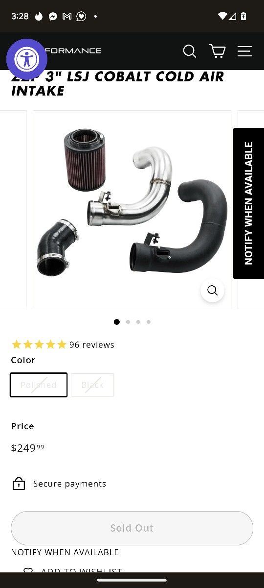 Zzp cold air intake for a 2.0 lsj cobalt SS or hhr Saturn ion ect.. it's got low miles good condition close to new costs $249 new will take $100 for it tho location is red bluff CA