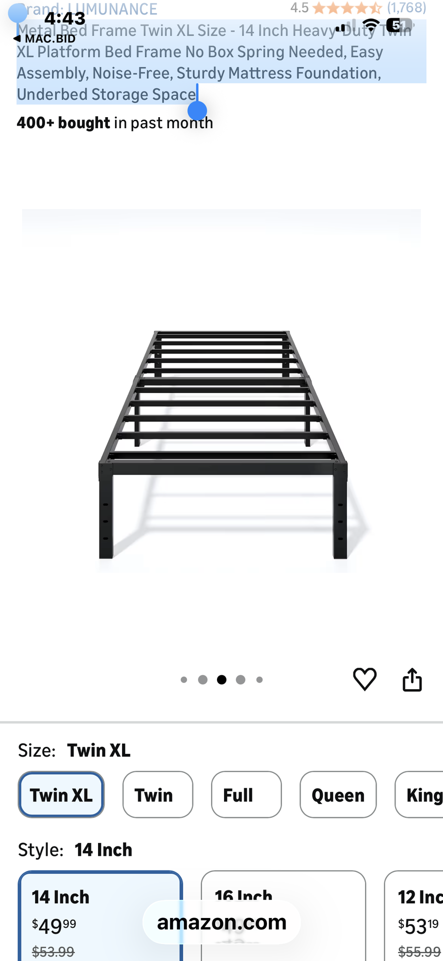 Metal Bed Frame Twin XL Size - 14 Inch Heavy-Duty Twin XL Platform Bed Frame No Box Spring Needed, Easy Assembly, Noise-Free, Sturdy Mattress Foundation, Underbed Storage Space 10