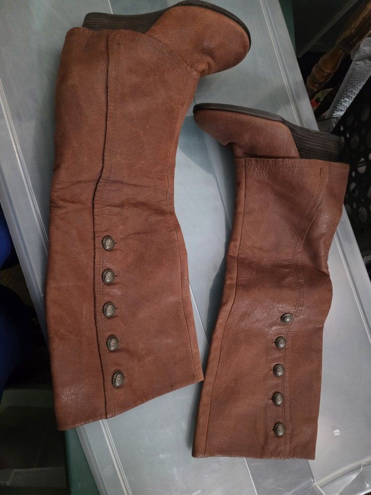 Vince Camuto Brown leather studded knee high boots women size 9 B mint condition used on a Photo Shoot Only