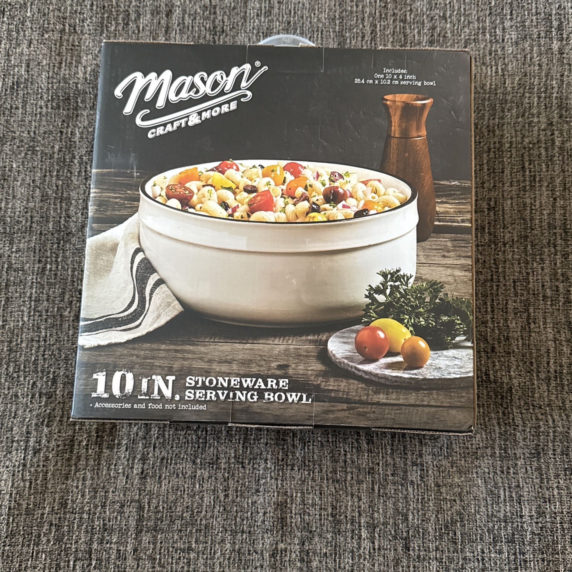 MASON brand 10” stoneware serving bowl Perfect for serving entrees, side dishes, or appetizers. Oven safe up to 400 degrees F.
