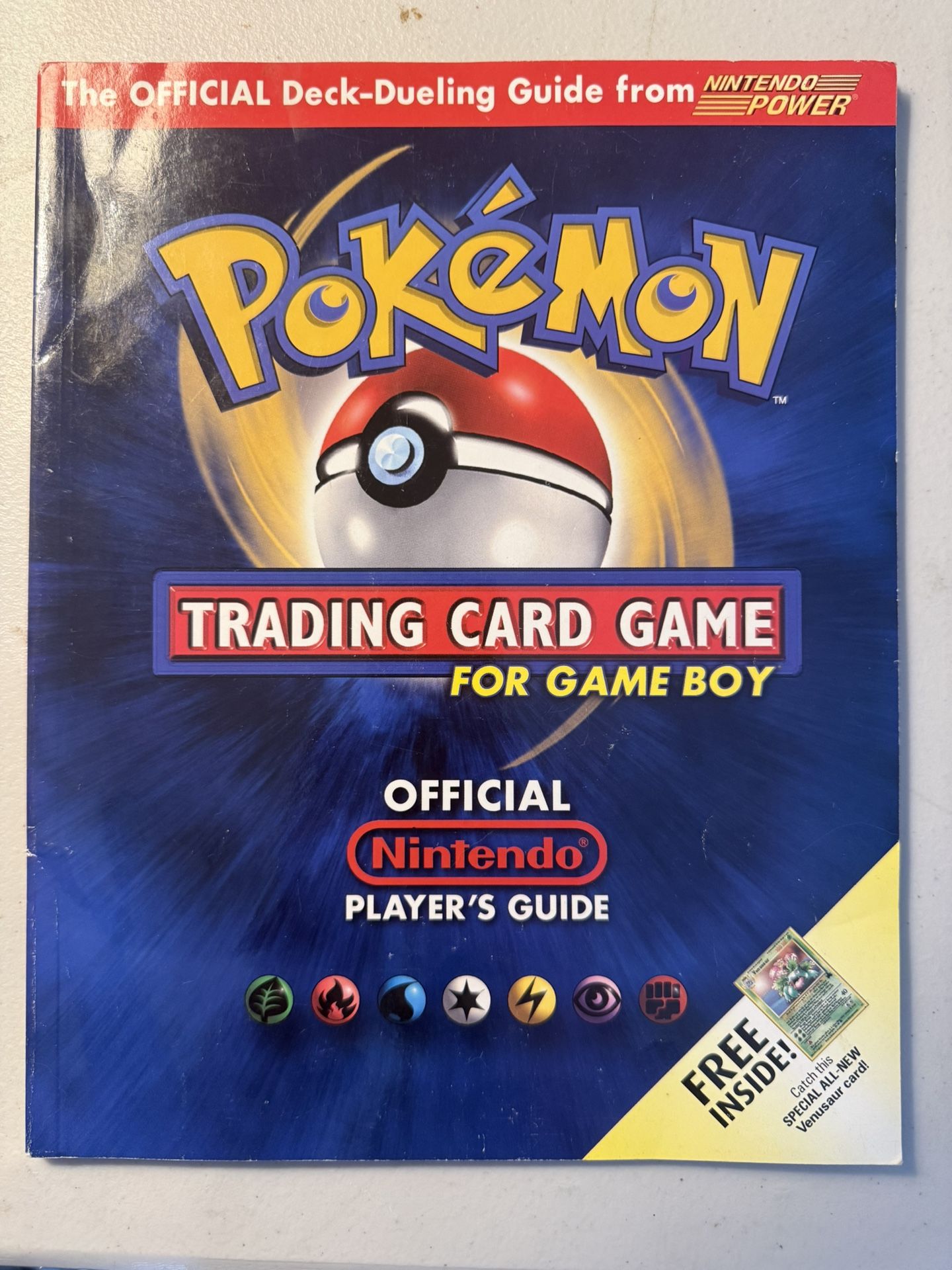 Selling an original copy of the Pokemon Trading Card Game strategy guide. This guide is the official Nintendo and Pokemon guide and walks you through all the tips, tricks and ways to beat the game 100%. Perfect for those trying to build the perfect decks and battle opponents with greats like Mewtwo, Charizard and Mew. This will not last long. Priced for a fast sale. NO VENUSAUR CARD!