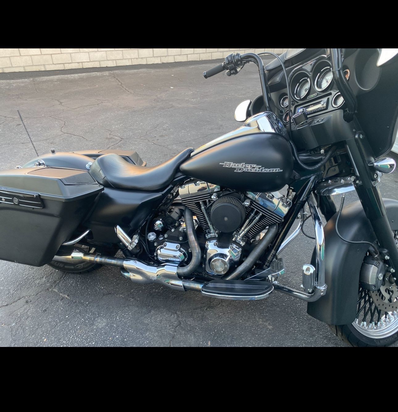 2011 street glide flat black has an amp speakers in the bags stretch bags Vance Heinz exhaust 16 inch bars 15000 obo 29,000 miles $10700