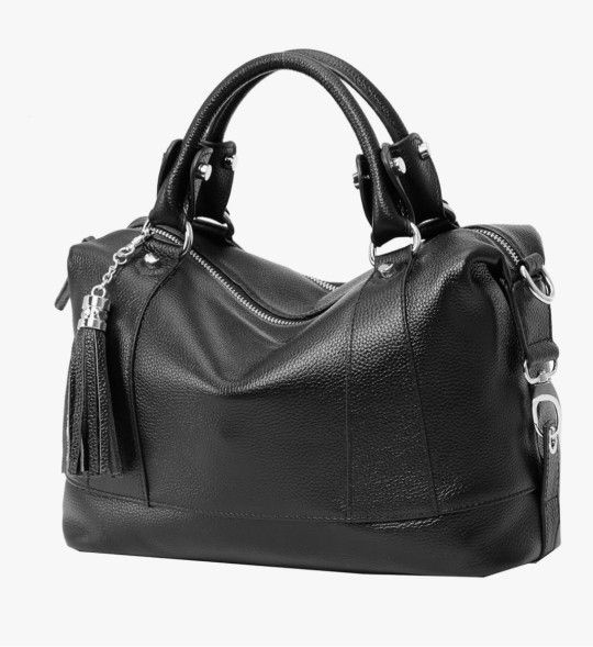 NEW Heshe Leather Shoulder Bag Womens Tote Top Handle Handbags Cross Body Black