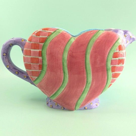 Funky Heart Vase 90s Vintage Ceramics Art Pottery Colorful Whimsy Decor