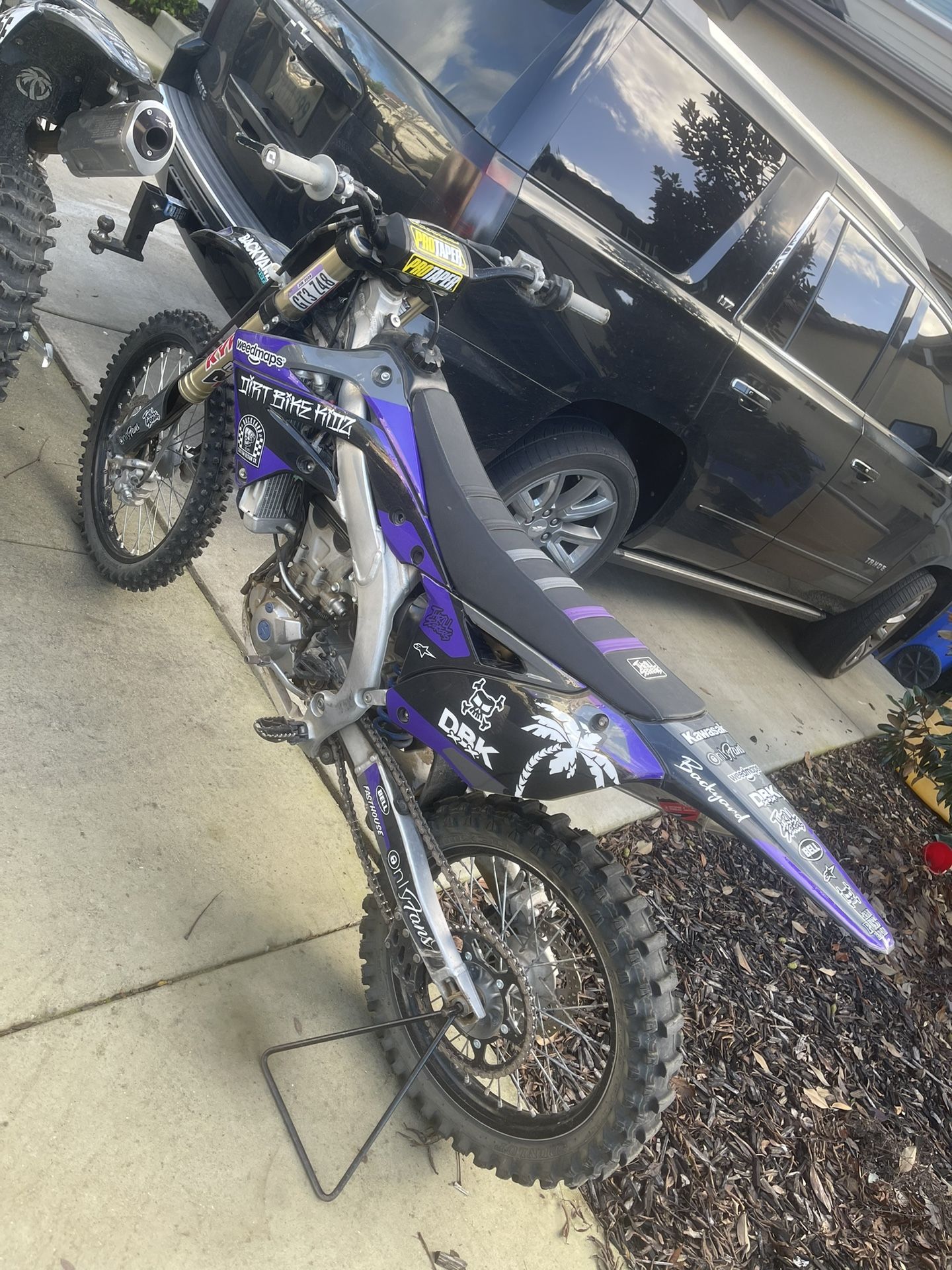 Fuel injected 2013 KX 450 Very fast and well maintained Paperwork in hand (REGISTERED) Pro taper bars , fmf pipe (Very Loud) , KYB forks , Odi half waffle grips, Thrill seekerz seat , Gold flaked backyard design graphics (4,000, Willing to negotiate) Also have (New Alpine star tech 7 boots sz 11 ,white on white) and (New Bell helmet black and grey comes with tinted 100% goggles)
